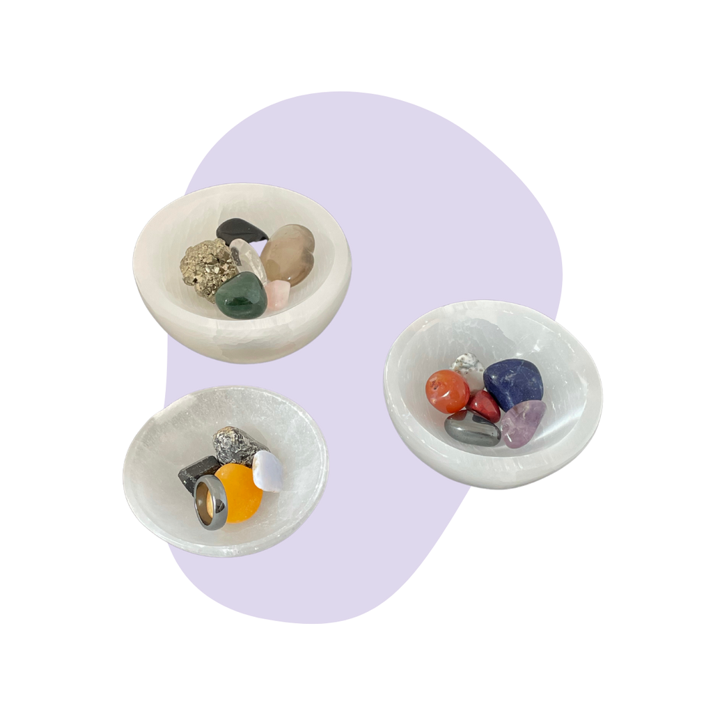 La sélénite émet une énergie purement vibratoire élevée – nettoyant, purifiant et éclaircissant votre espace. Un bol en sélénite est un moyen idéal pour stocker et charger vos cristaux simultanément.